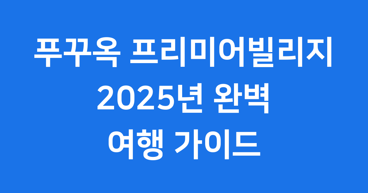 푸꾸옥 프리미어빌리지 2025년 완벽 가이드